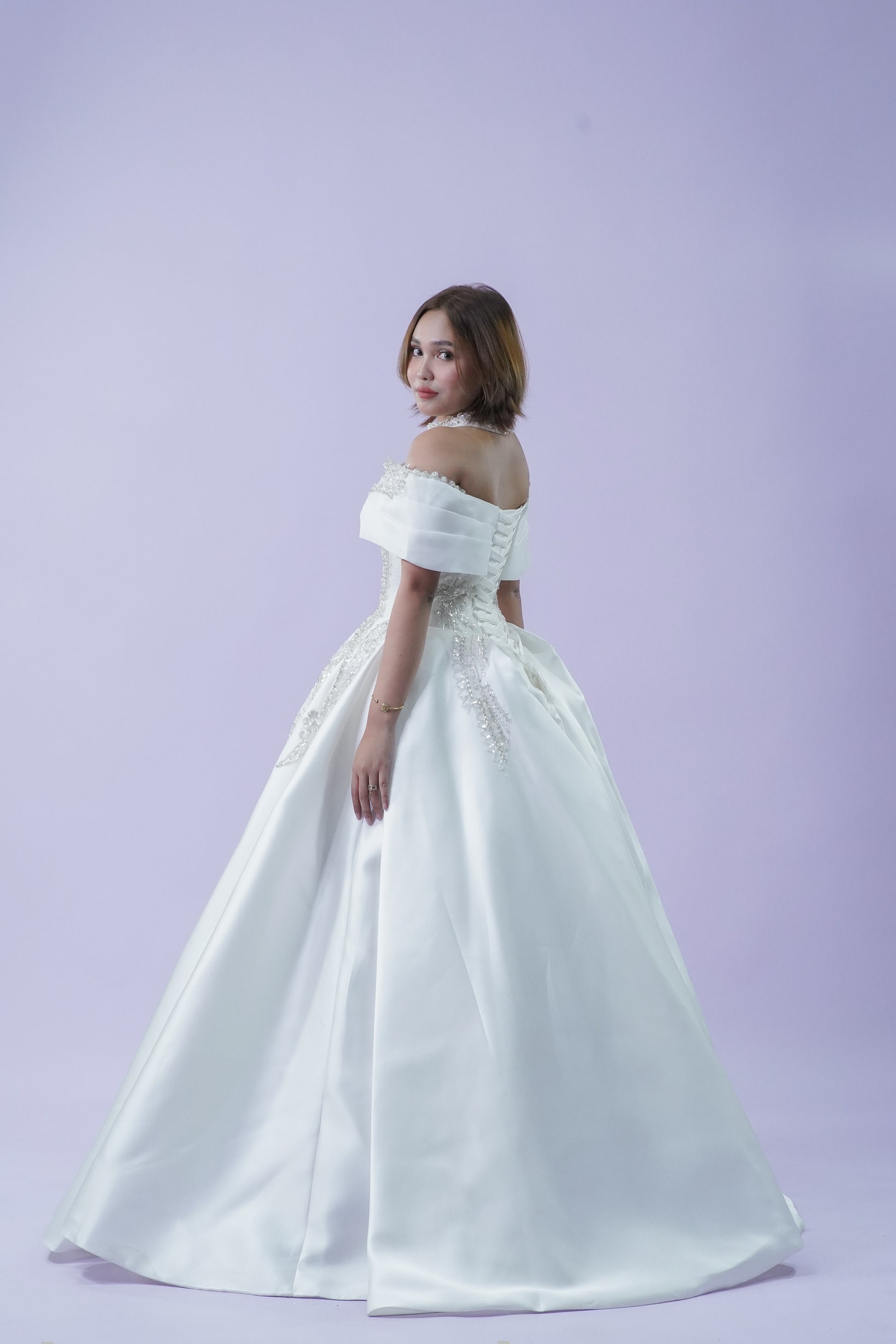 Elegant Duchess Off-Shoulder Bridal Wedding Gown