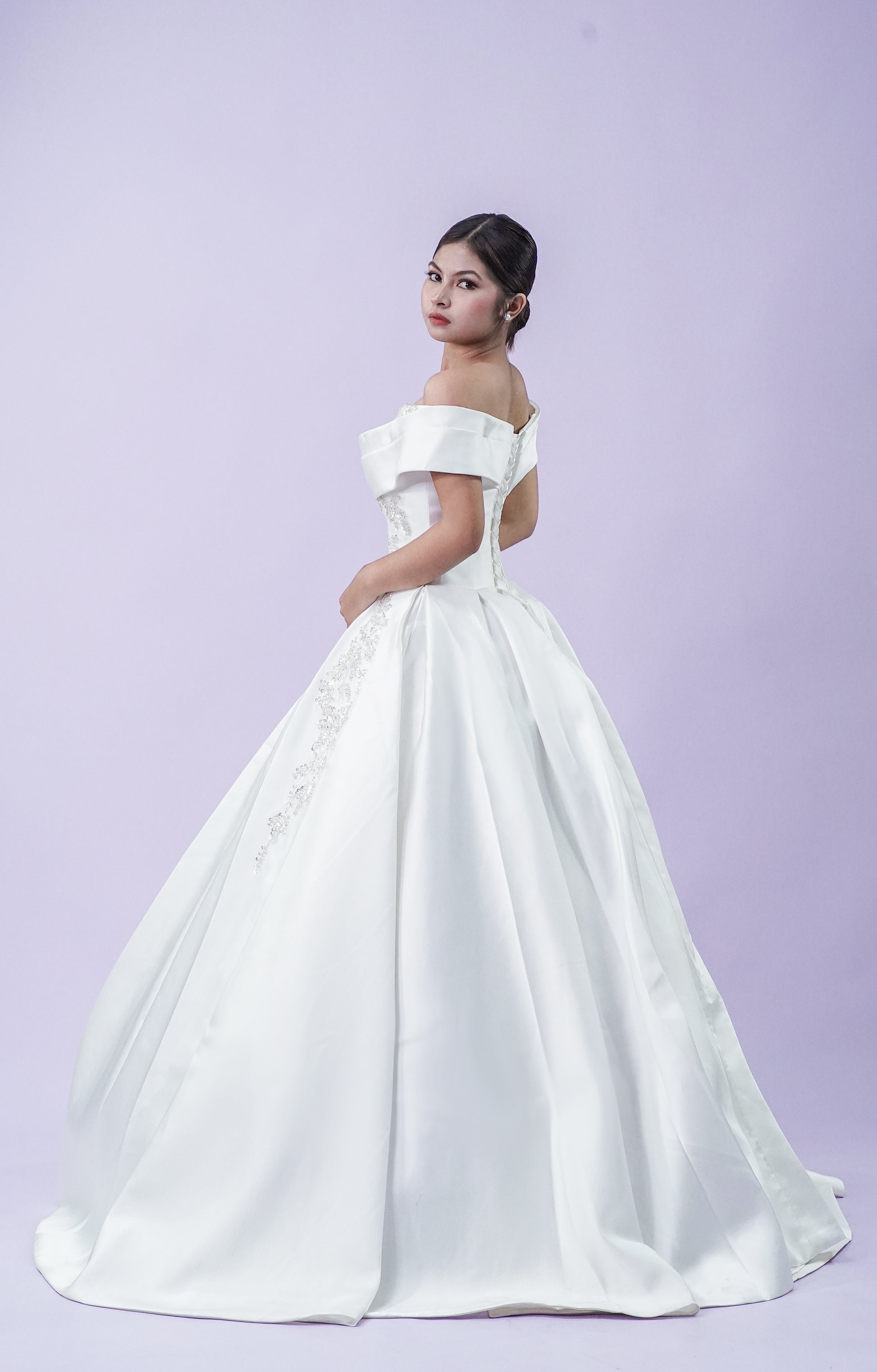 Elegant Off-Shoulder Satin Wedding Bridal Gown