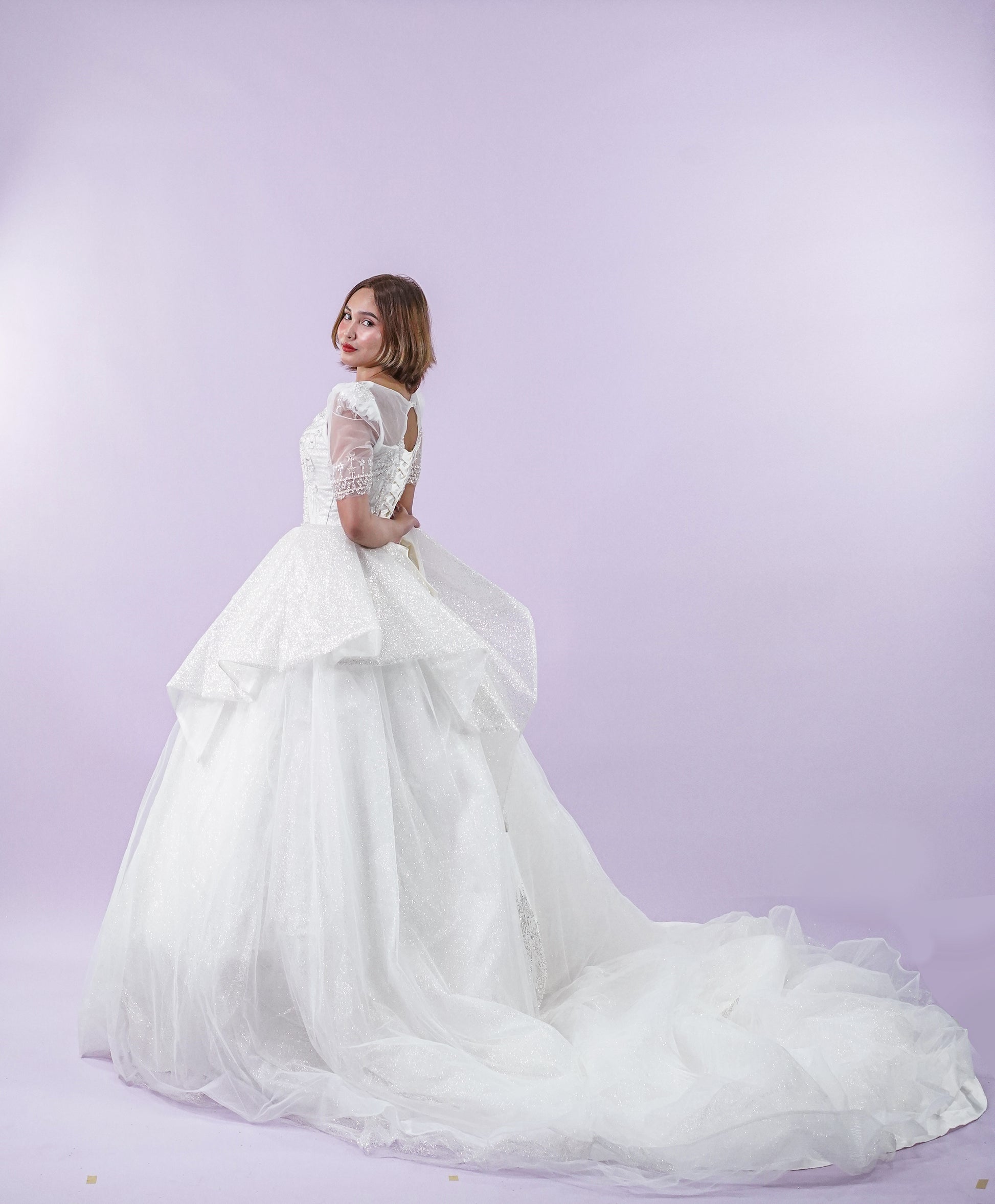 Intricate Long Back Short Sleeve Wedding Bridal Gown