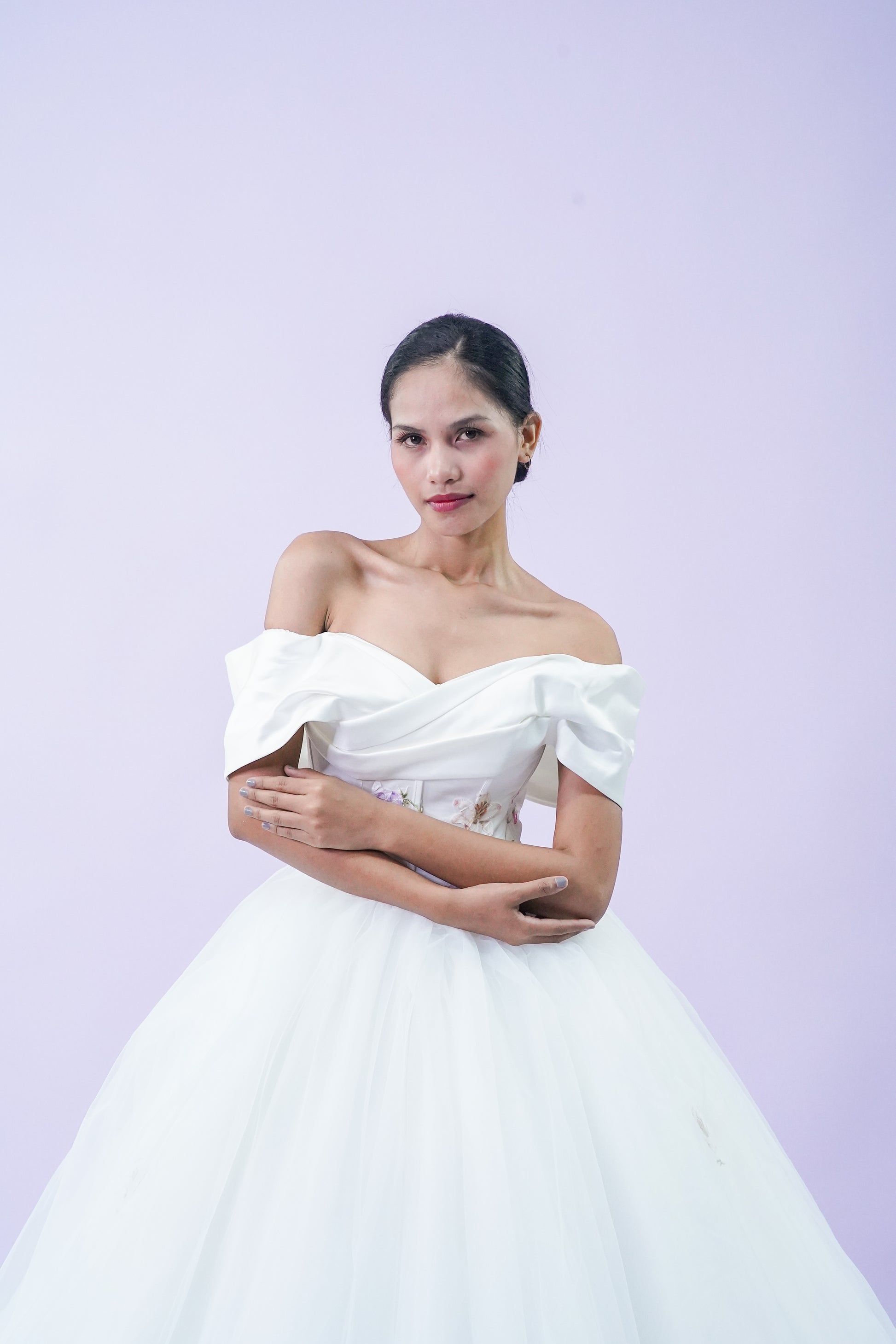 Off-Shoulder Satin Plain Elegant Bridal Gown