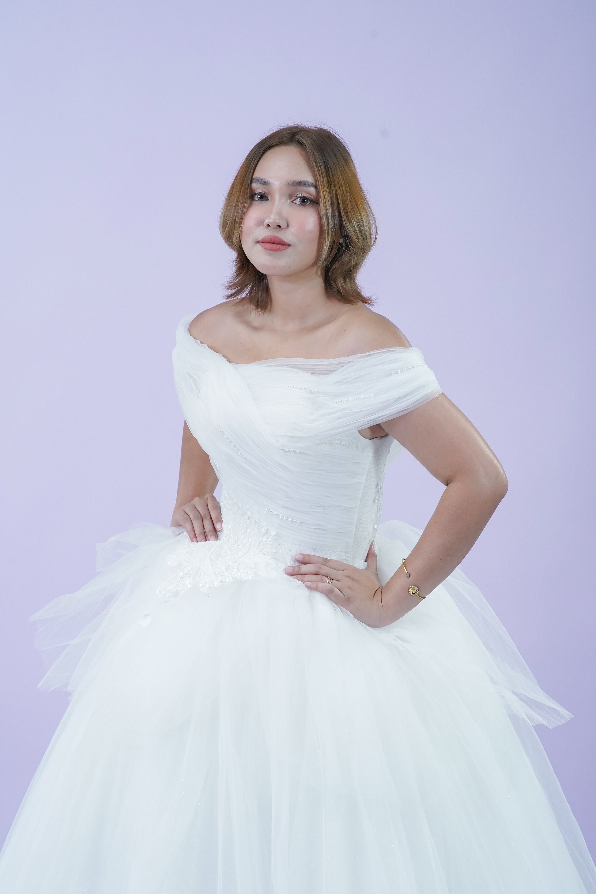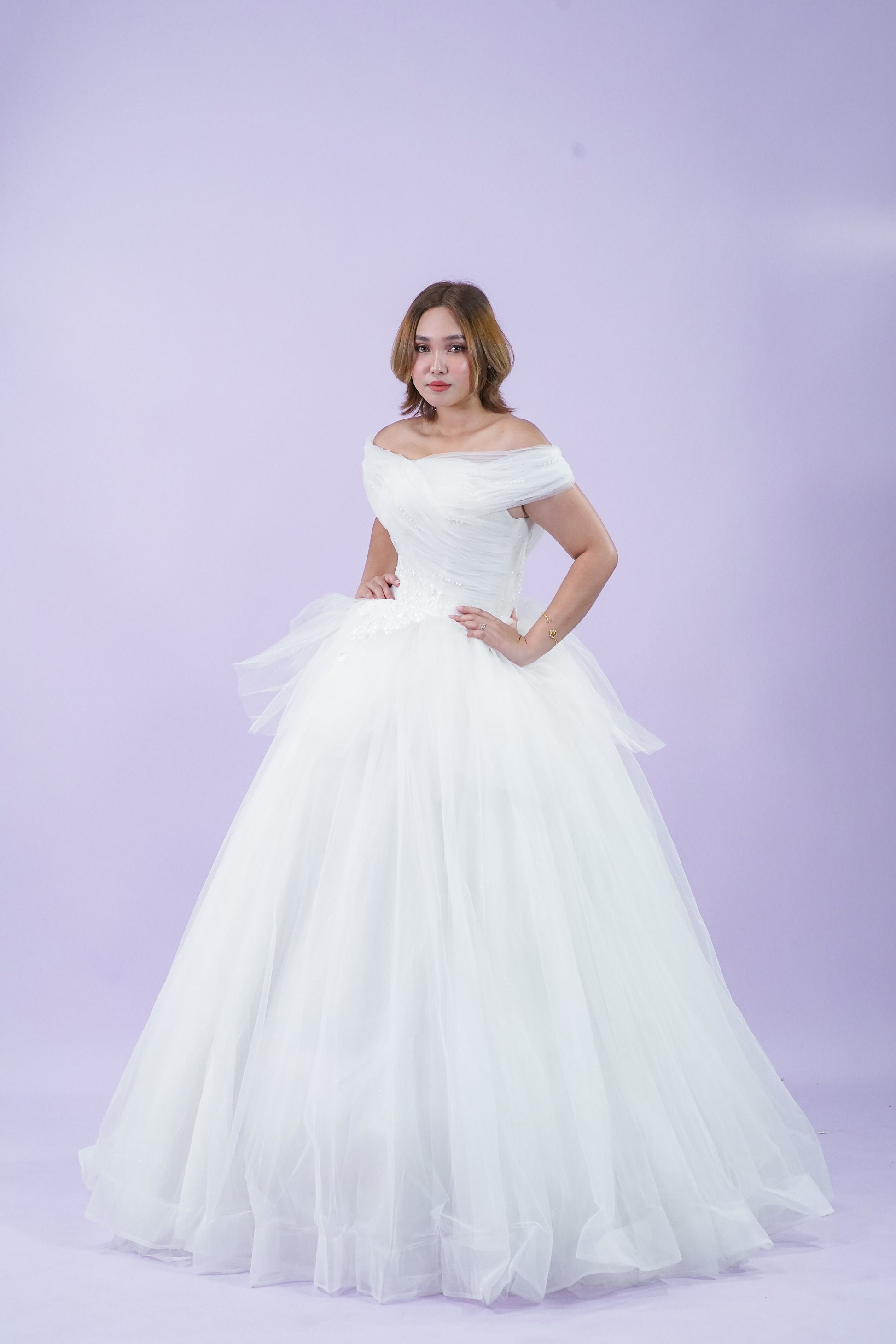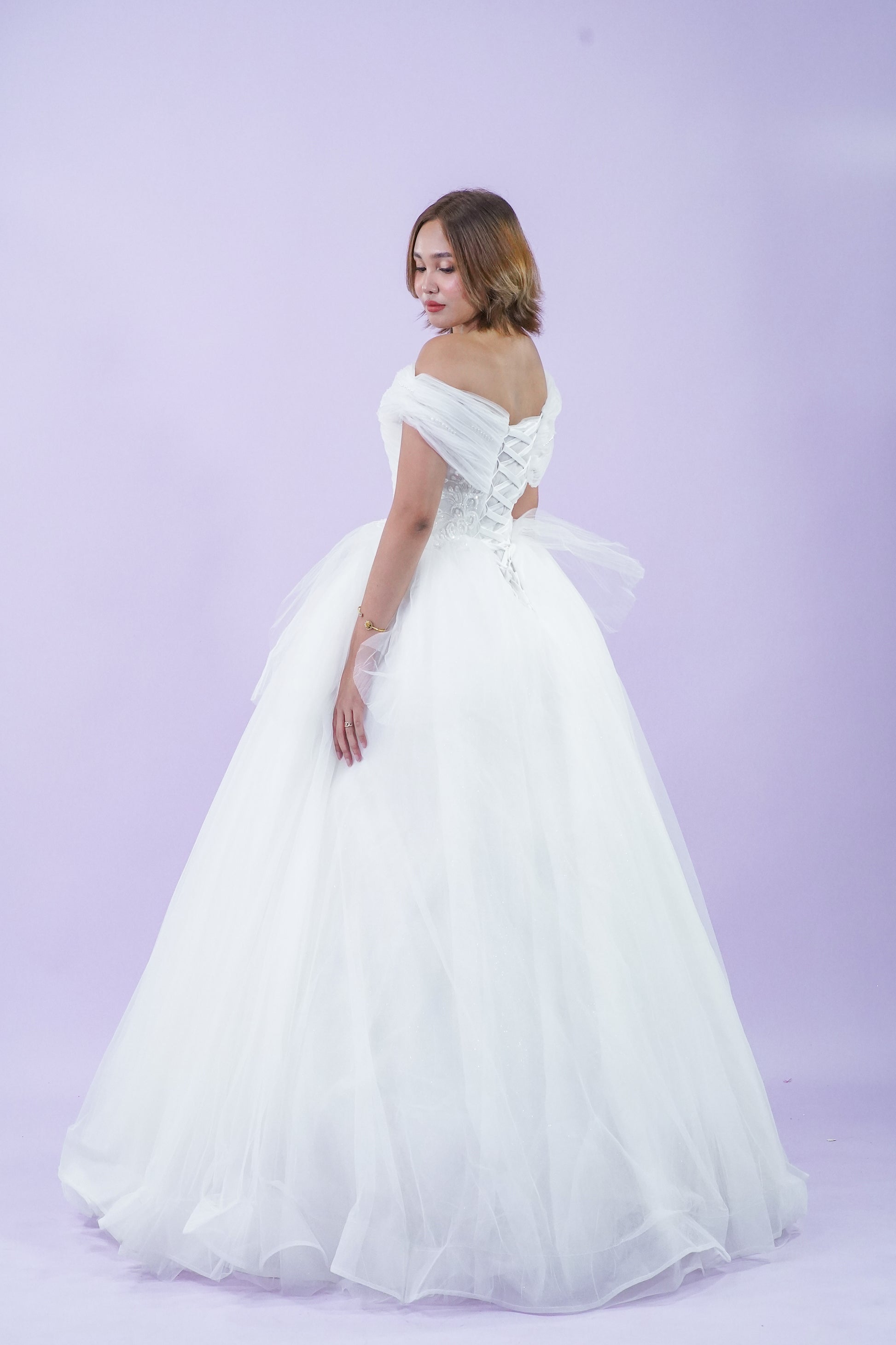 Off-Shoulder Simple Elegant Wedding Bridal Gown