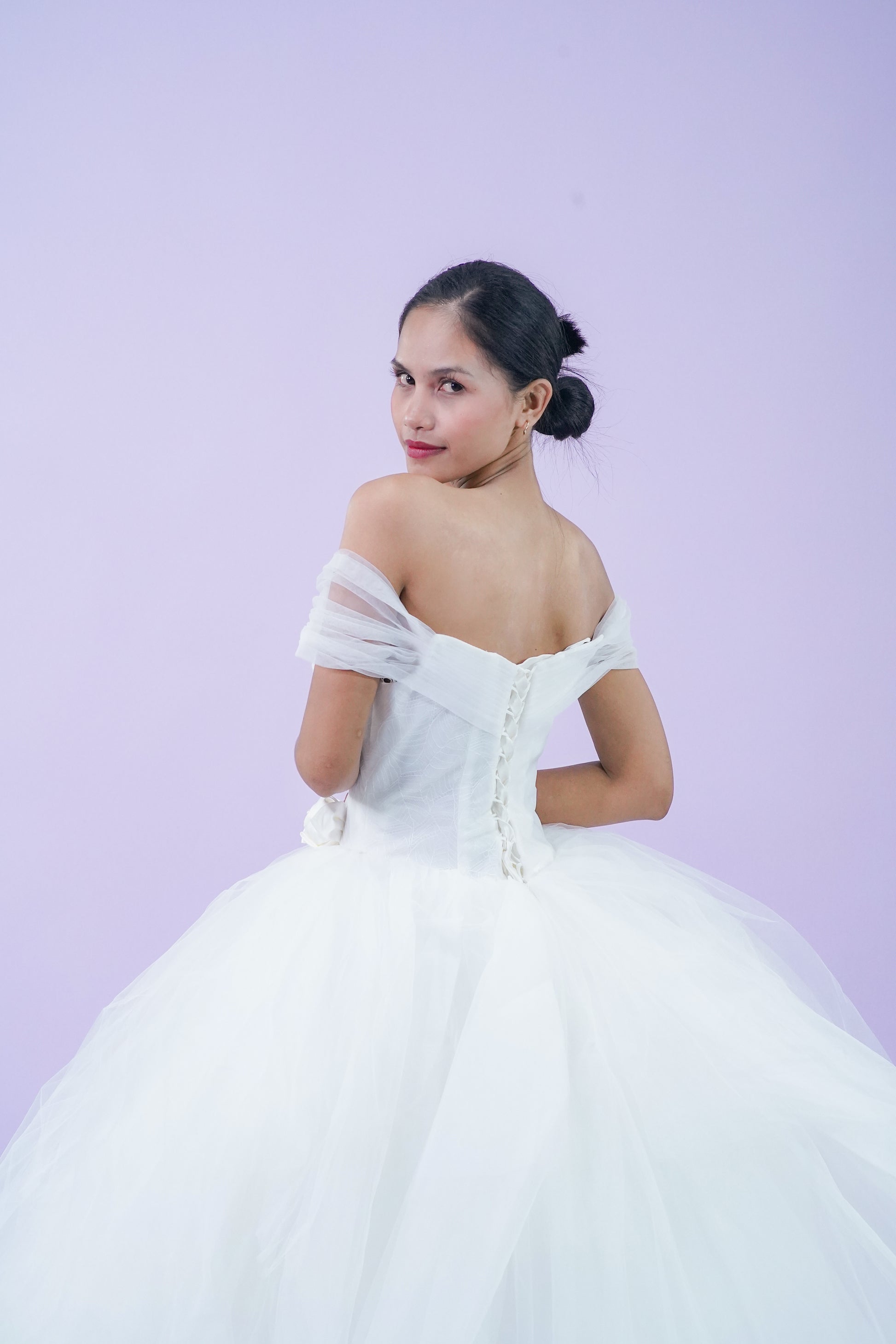 Off-Shoulder Simple Elegant Wedding Bridal Gown