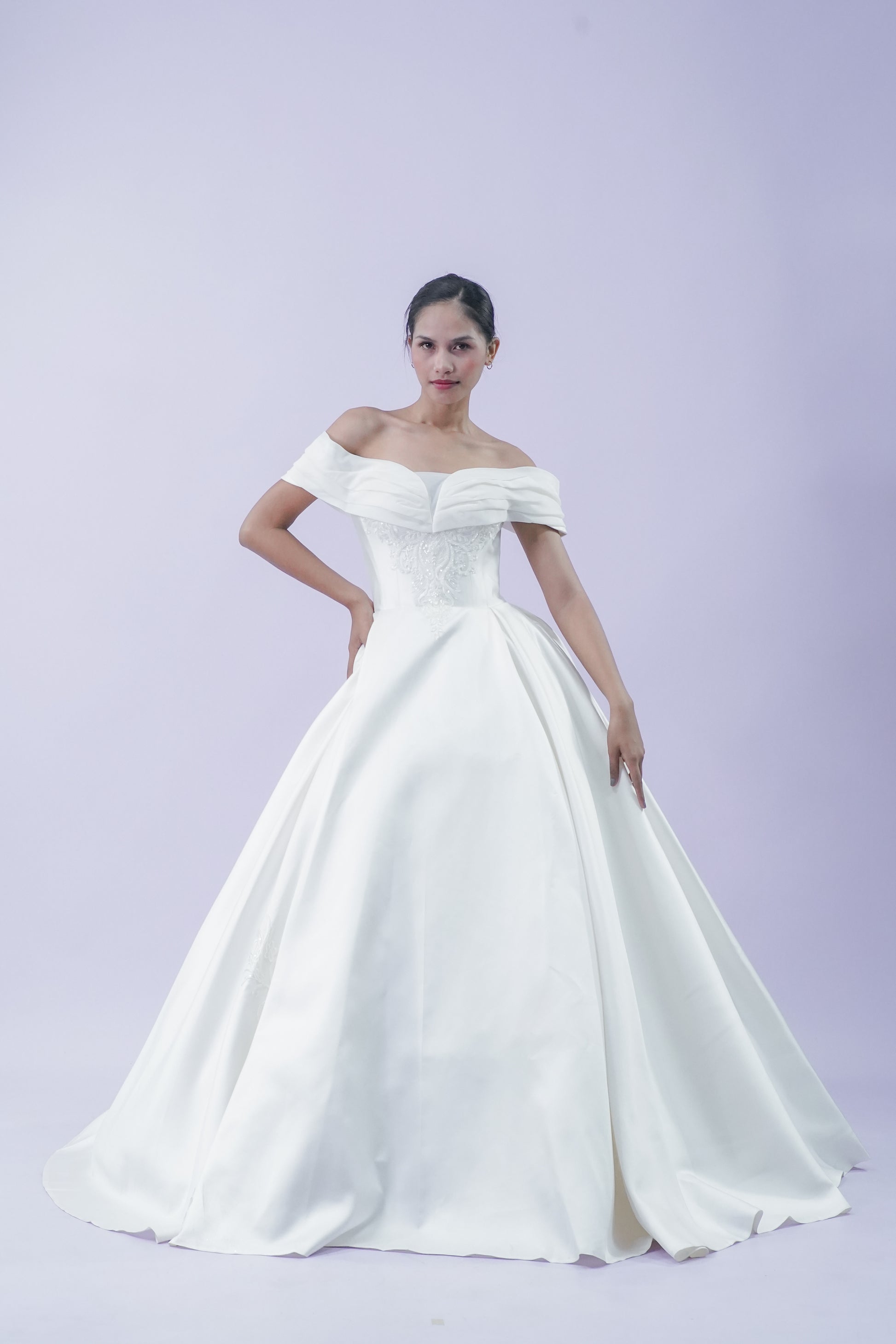 Off-Shoulder Soft Elegant Simple Wedding Bridal Gown