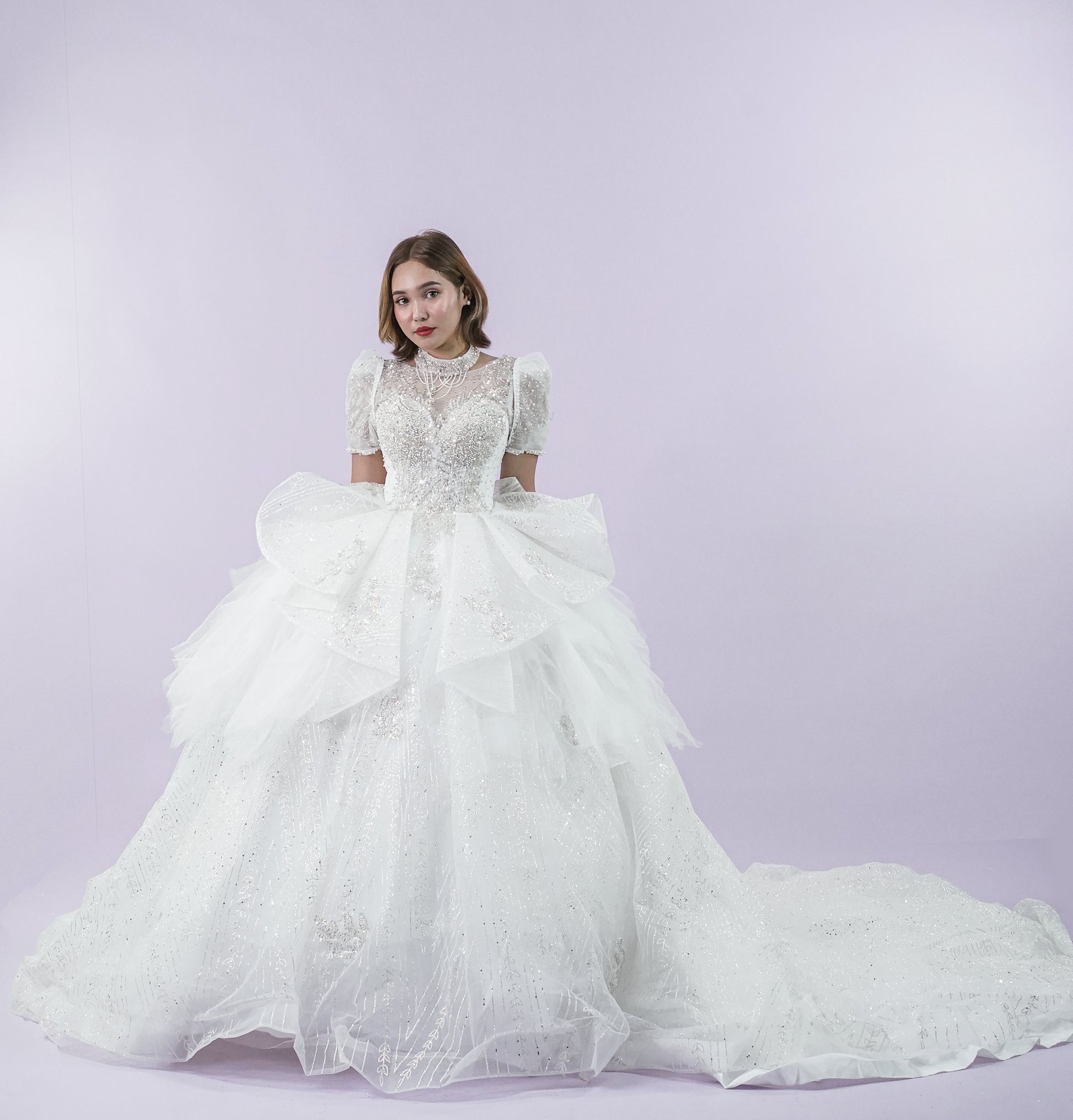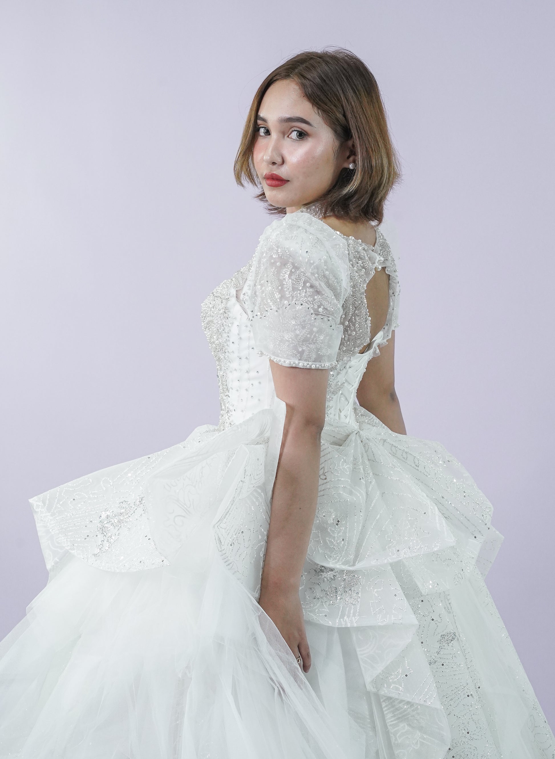 Regal Jewel Short Sleeve Long Back Wedding Bridal Gown