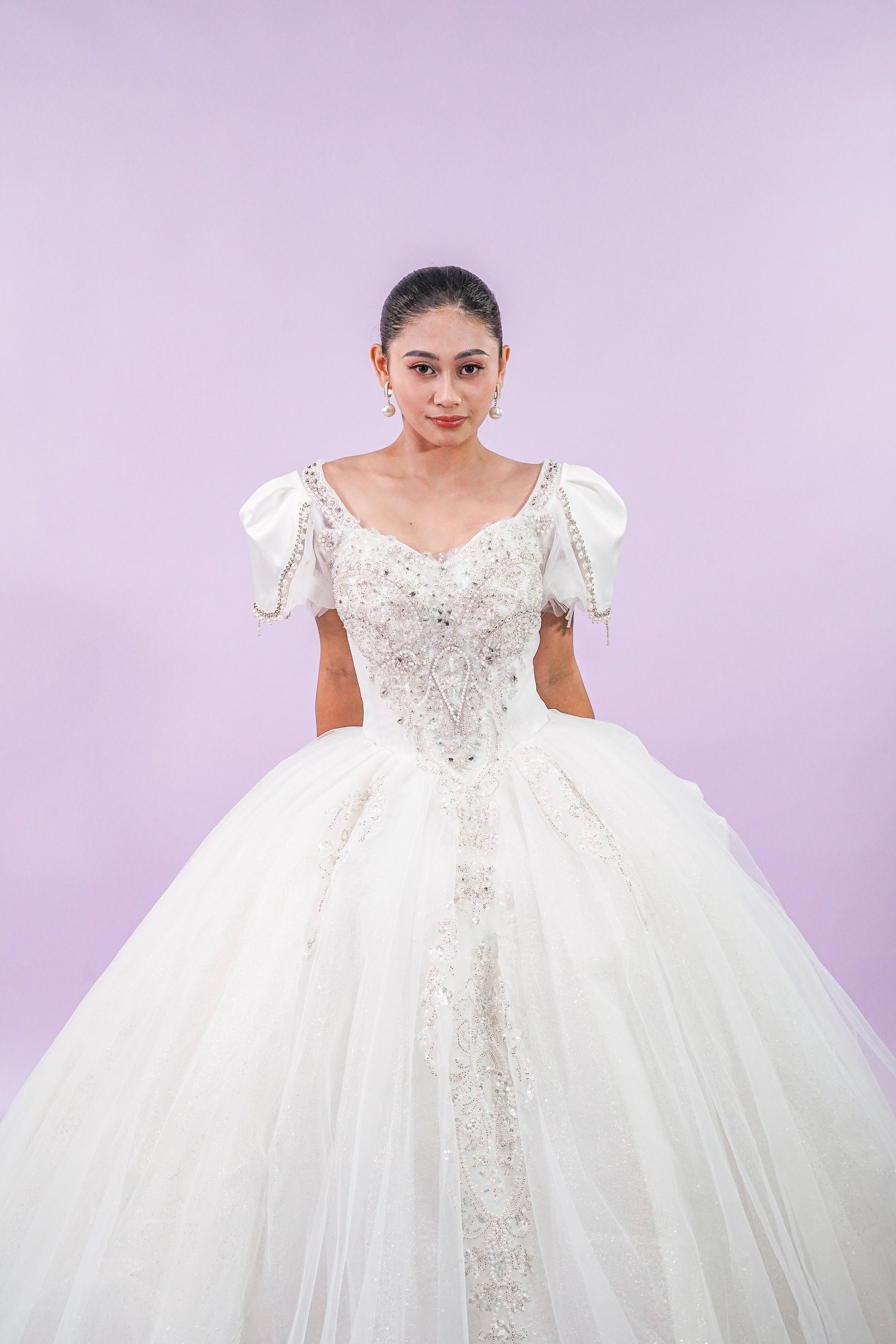 Short Puffed Sleeves Regal Wedding Bridal Gown