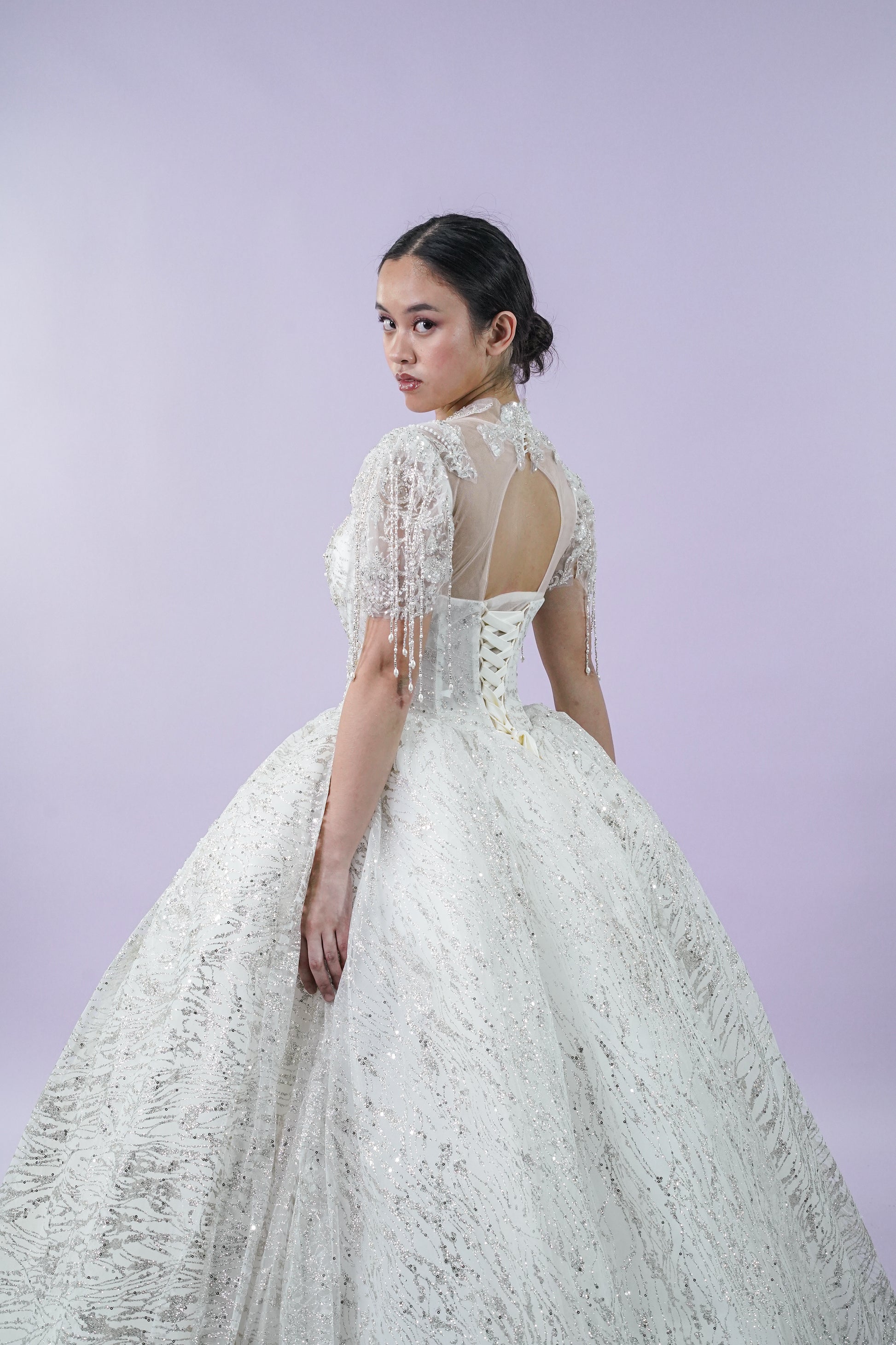 Short Sleeve Regal Bejeweled Wedding Bridal Gown